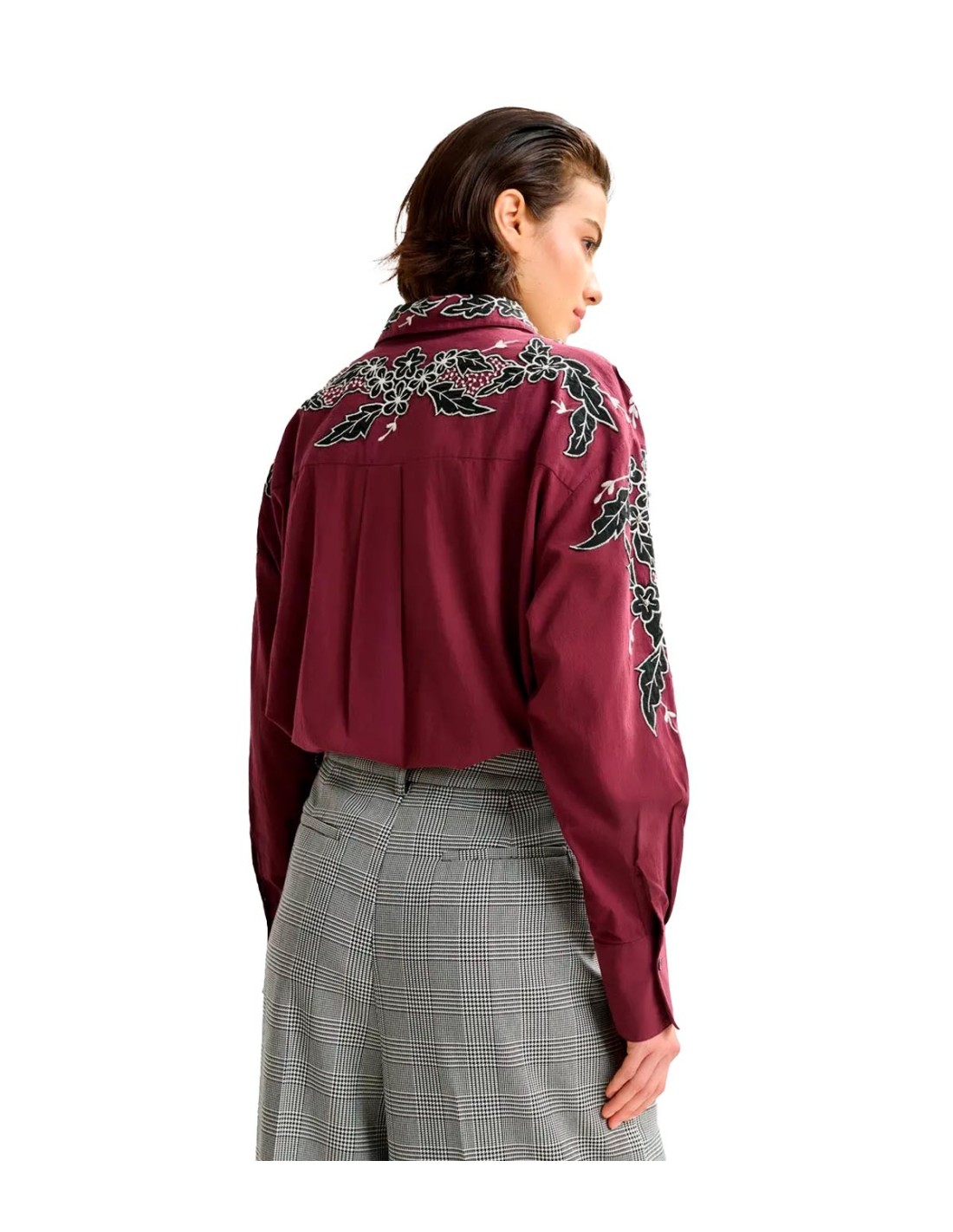 La Camisa de Algodón Bordada con Adornos de Essentiel Antwerp combina estilo desenfadado y detalles sofisticados en un solo diseño. Confeccionada en 100 % algodón, presenta un corte relajado, silueta cuadrada y hombros caídos que aportan comodidad y libertad de movimiento. El elaborado bordado floral adornado con strass añade un toque elegante y distintivo. El cierre clásico de botones se complementa con bajo redondeado, pequeñas aberturas laterales y parte trasera ligeramente más larga. Una prenda perfecta para elevar los básicos diarios con un detalle especial y refinado.