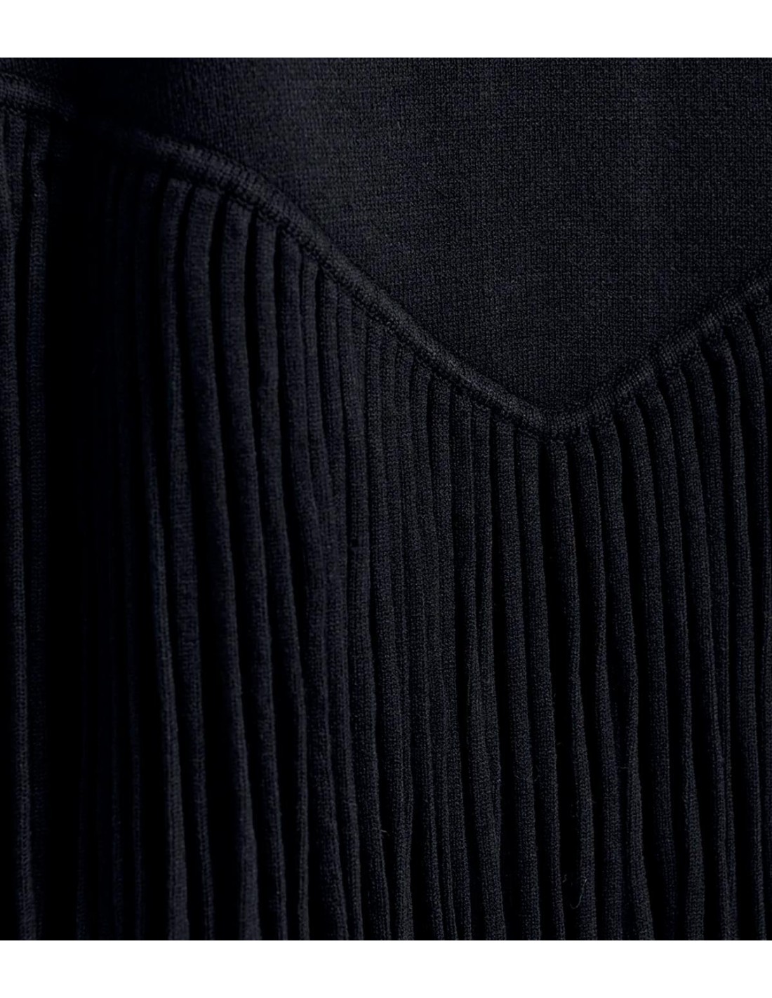 Essentiel AntwerpLa Chaqueta De Punto Con Flecos de Essentiel Antwerp en color negro es una prenda versátil y elegante. Confeccionada en punto fino, ofrece un ajuste holgado con hombros caídos y un moderno largo cropped. Incluye cierre con botones y bolsillos de parche que aportan funcionalidad. Los flecos completan el diseño, añadiendo dinamismo y un toque distintivo al conjunto.