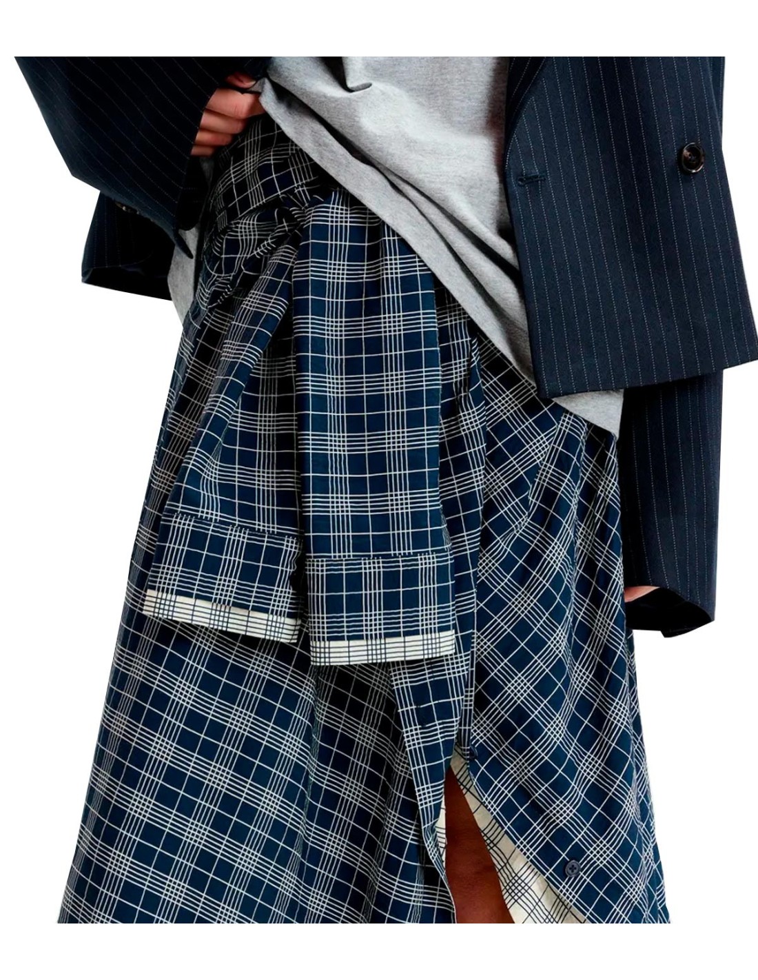 Essentiel AntwerpLa Falda Drapeada Asimétrica de Essentiel Antwerp combina un diseño desenfadadamente deconstruido con un estilo moderno y original. Presenta mangas de camisa anudadas a la cintura que aportan un detalle creativo y distintivo. Su cierre con botones y ajuste holgado garantizan comodidad y versatilidad. Confeccionada en 75 % viscosa y 25 % poliamida, ofrece suavidad y caída elegante en cada movimiento.