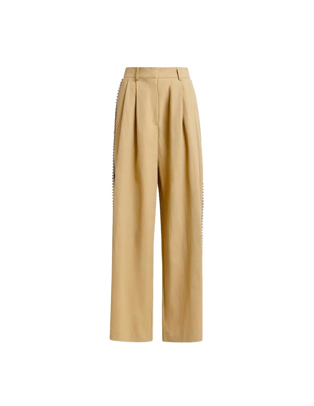 Essentiel AntwerpEl Pantalón De Pernera Ancha de Essentiel Antwerp en color arena combina elegancia y comodidad con un corte moderno y fluido. Presenta tiro medio y pernera ancha que ofrecen libertad de movimiento y un look sofisticado. Incluye cierre con cremallera y corchete, además de trabillas para cinturón, aportando funcionalidad y estilo. Confeccionado en 52 % poliamida y 48 % algodón, garantiza suavidad, durabilidad y un acabado de calidad.