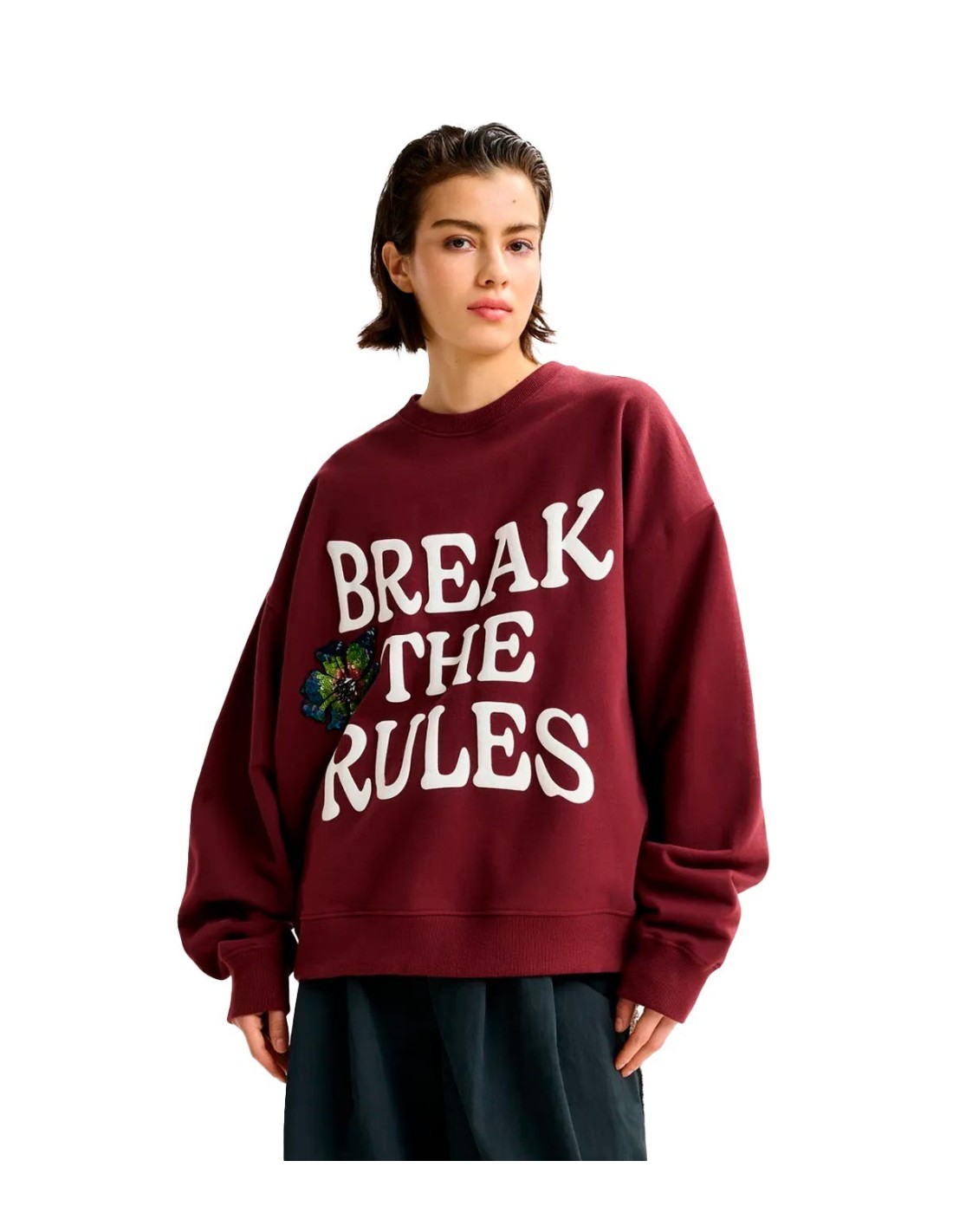 Essentiel AntwerpLa Sudadera Con Estampado de Essentiel Antwerp está confeccionada en 100 % algodón en color burdeos, ofreciendo suavidad y comodidad. Presenta un ajuste holgado con cuello redondo y manga larga, ideal para un look casual con estilo. Los bordados de lentejuelas y abalorios aportan un toque sofisticado y llamativo al diseño. Una prenda versátil que eleva los básicos del día a día con un acabado distintivo.