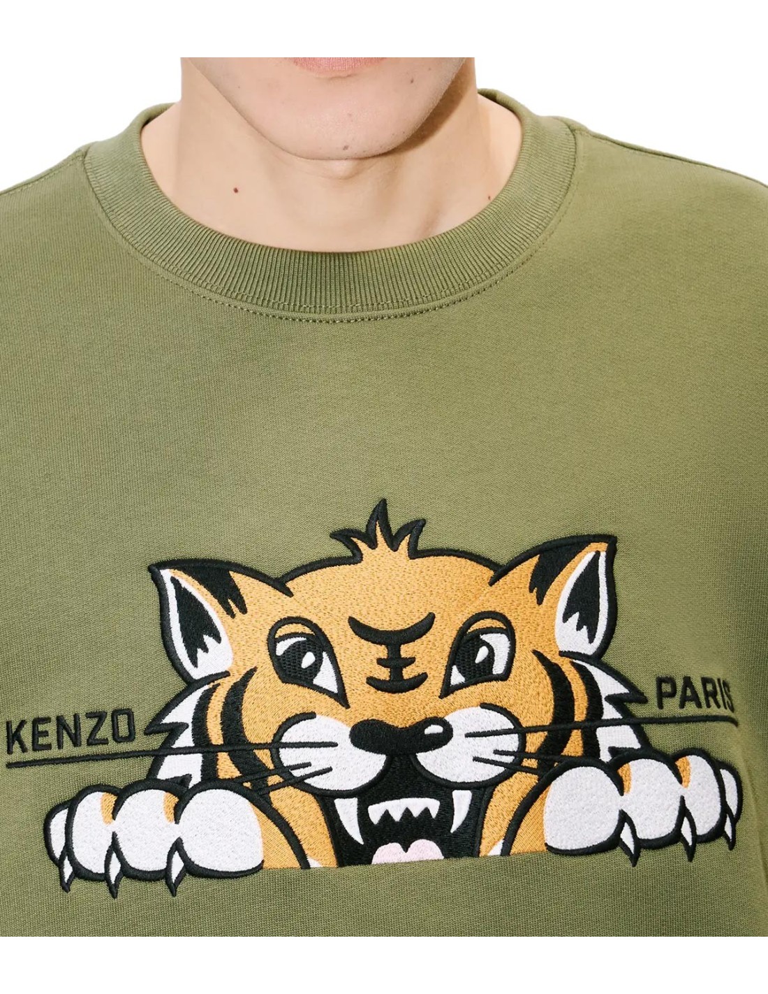 KenzoLa sudadera bordada 'KENZO Happy Tiger' de Kenzo combina diseño icónico con comodidad premium. Confeccionada en 100% algodón y fabricada en Portugal, ofrece un tacto suave y una excelente calidad. Destaca por el vibrante estampado 'KENZO Happy Tiger' bordado en el pecho, que aporta personalidad al diseño. Su color verde caqui, el cuello redondo y las mangas largas la hacen ideal para el día a día. Una prenda versátil con el sello distintivo de la marca.