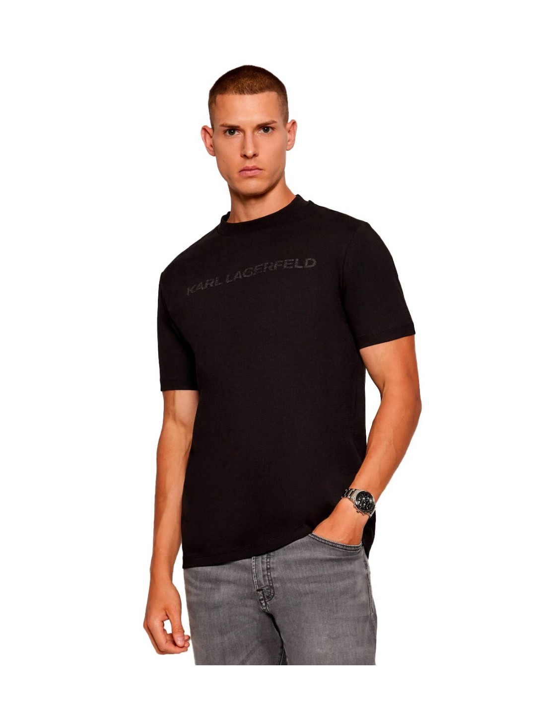 Karl LagerfeldLa camiseta Regular Fit de Karl Lagerfeld combina estilo clásico y comodidad en una prenda versátil. En color negro, presenta cuello redondo, manga corta y el logo de la marca en el pecho, que aporta un detalle distintivo y elegante. Con corte regular y confeccionada en 100% algodón, ofrece suavidad, transpirabilidad y un ajuste cómodo, perfecta para looks casuales y modernos.