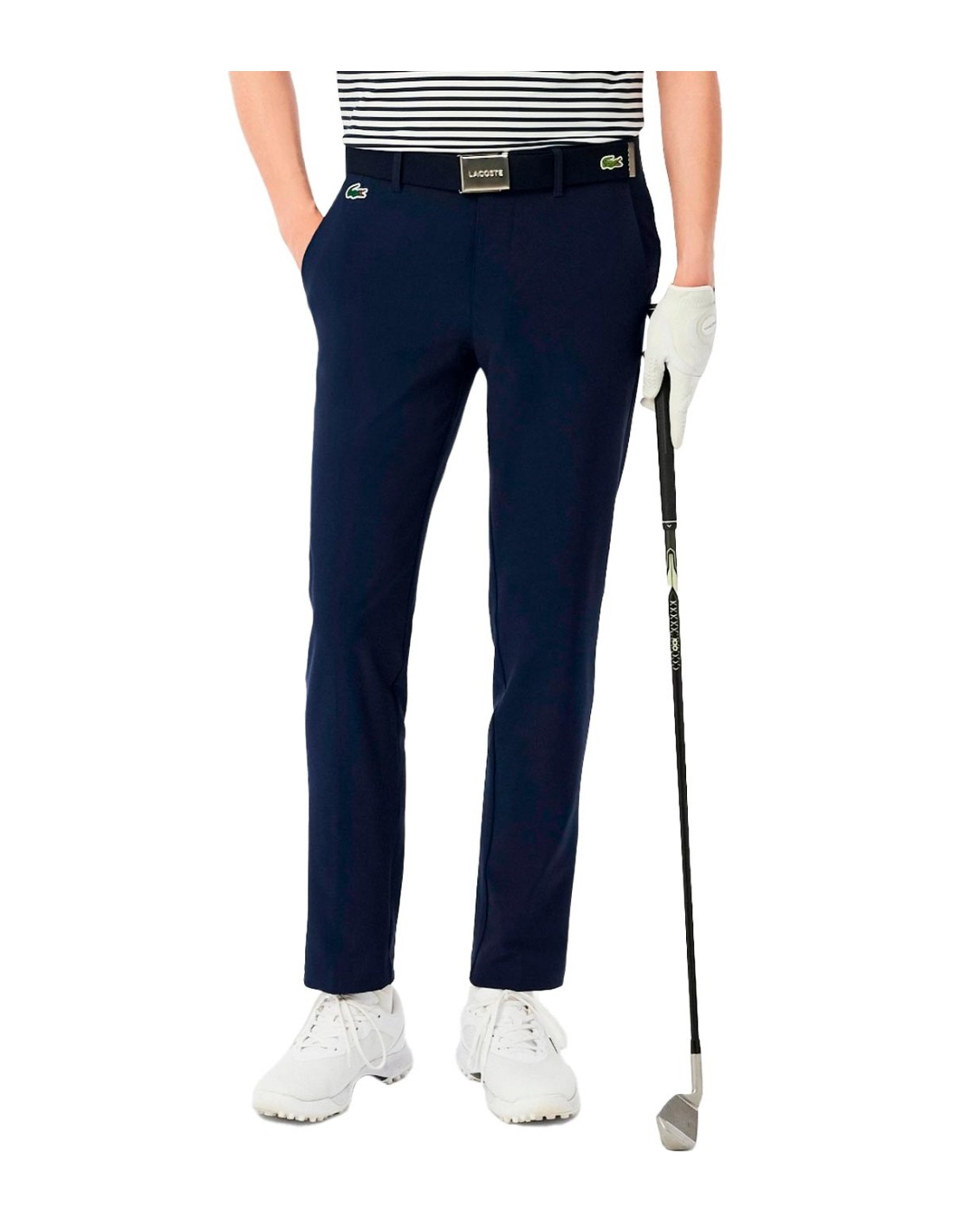 LacosteEl pantalón chino de Lacoste en color marino combina estilo y funcionalidad en un diseño contemporáneo. Confeccionado en sarga elástica absorbente, ofrece una gran libertad de movimiento y confort durante todo el día. Su corte ajustado estiliza la silueta sin sacrificar comodidad. Incluye un discreto cocodrilo de silicona en el bolsillo delantero derecho, aportando un detalle distintivo. Ideal para un look urbano y versátil, tanto casual como más pulido.