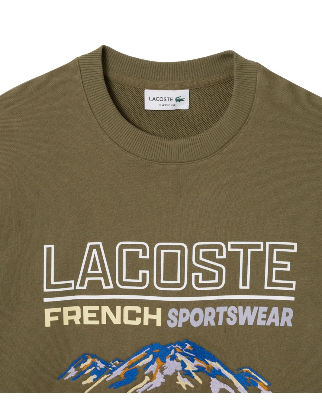 LacosteSudadera con motivo bordado en color caqui, diseñada con cuello redondo y acabados de canalé en cuello, puños y bajo para un ajuste cómodo. El motivo de montaña bordado en el pecho añade un toque original y distintivo al diseño. Confeccionada en algodón 100%, ofrece suavidad y confort durante todo el día. Ideal para un look casual con personalidad.