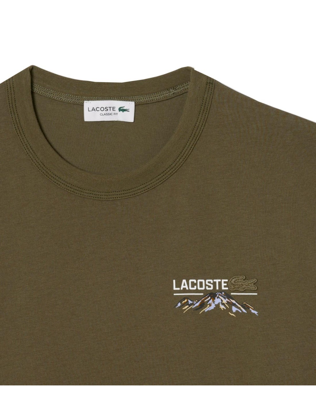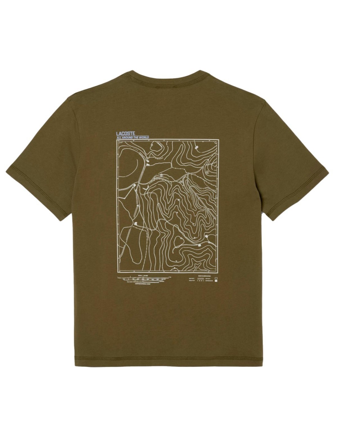 La Camiseta Con Logo de Lacoste en color verde está confeccionada en punto jersey de algodón orgánico 100%, ofreciendo suavidad y sostenibilidad. Su corte classic fit y mangas cómodas garantizan un ajuste relajado y confortable. Destaca por el pespunte triple en cuello y mangas, que aporta durabilidad y estilo. En el pecho luce el cocodrilo bordado al tono junto a un motivo de montaña, mientras que en la parte trasera presenta un estampado de topografía único. Una prenda funcional y elegante, perfecta para un look casual con carácter.
