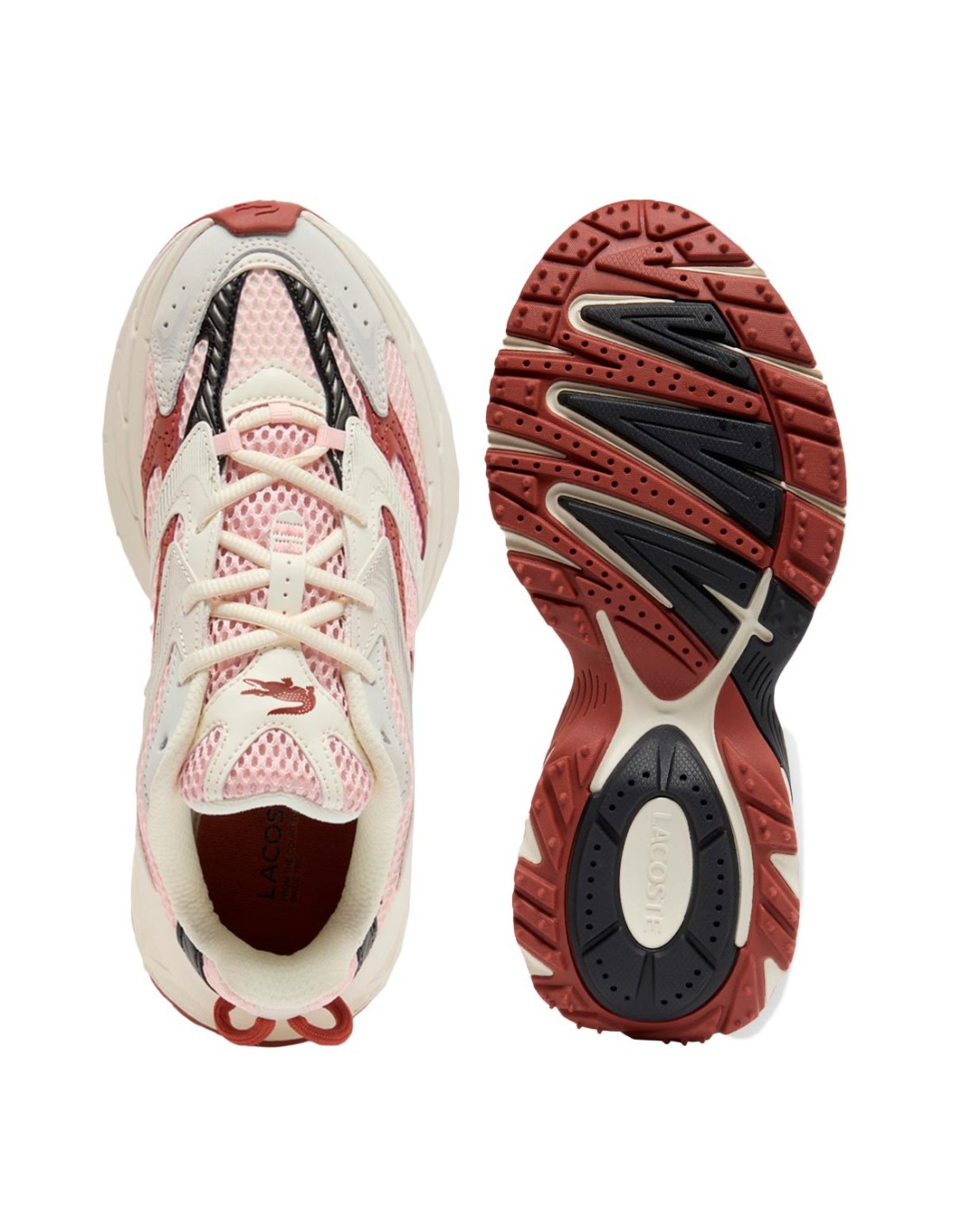 LacosteLas Zapatillas Neo Shot de Lacoste en color blanco y rosa combinan estilo y funcionalidad con un cierre de cordones clásico. Su parte superior mixta de nobuk y malla ofrece durabilidad y transpirabilidad, mientras que el cocodrilo en el panel central añade un toque icónico. La entresuela XXL de EVA proporciona un confort superior en cada paso, complementada por una suela de caucho ligero, suave y texturizado para una excelente tracción. Perfectas para quienes buscan un calzado moderno, cómodo y con personalidad