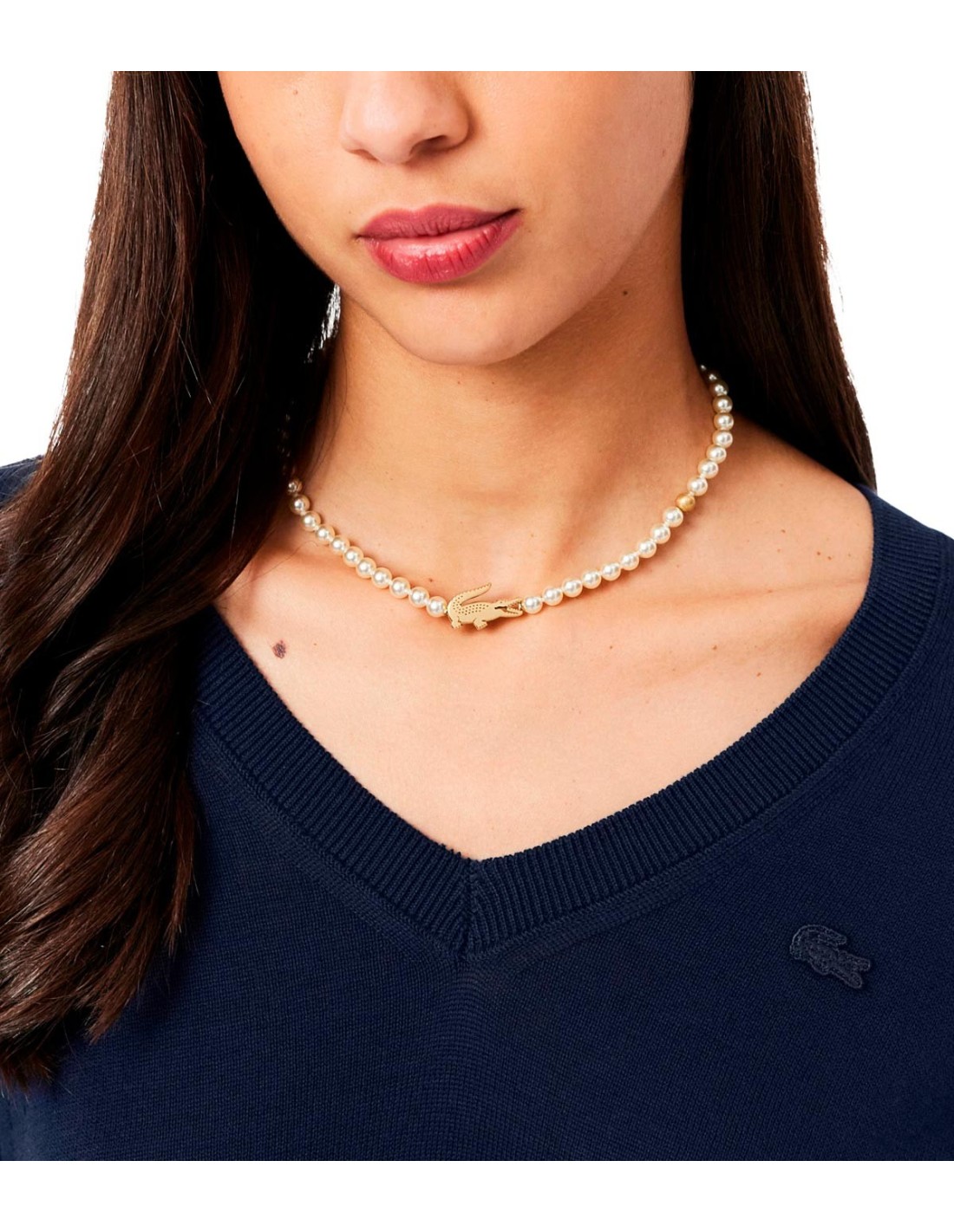 LacosteEl Jersey con Cuello de Pico de Lacoste en color marino está confeccionado en algodón 100%, ofreciendo una suavidad y comodidad excepcionales. Presenta un cuello de pico acanalado y mangas largas que aportan un estilo clásico y versátil. Destacan los delicados detalles de encaje en los hombros, el pecho y los puños, que le dan un toque sofisticado y femenino. El icónico cocodrilo bordado en el pecho añade un detalle distintivo y elegante. Perfecto para quienes buscan combinar estilo y confort en su día a día.