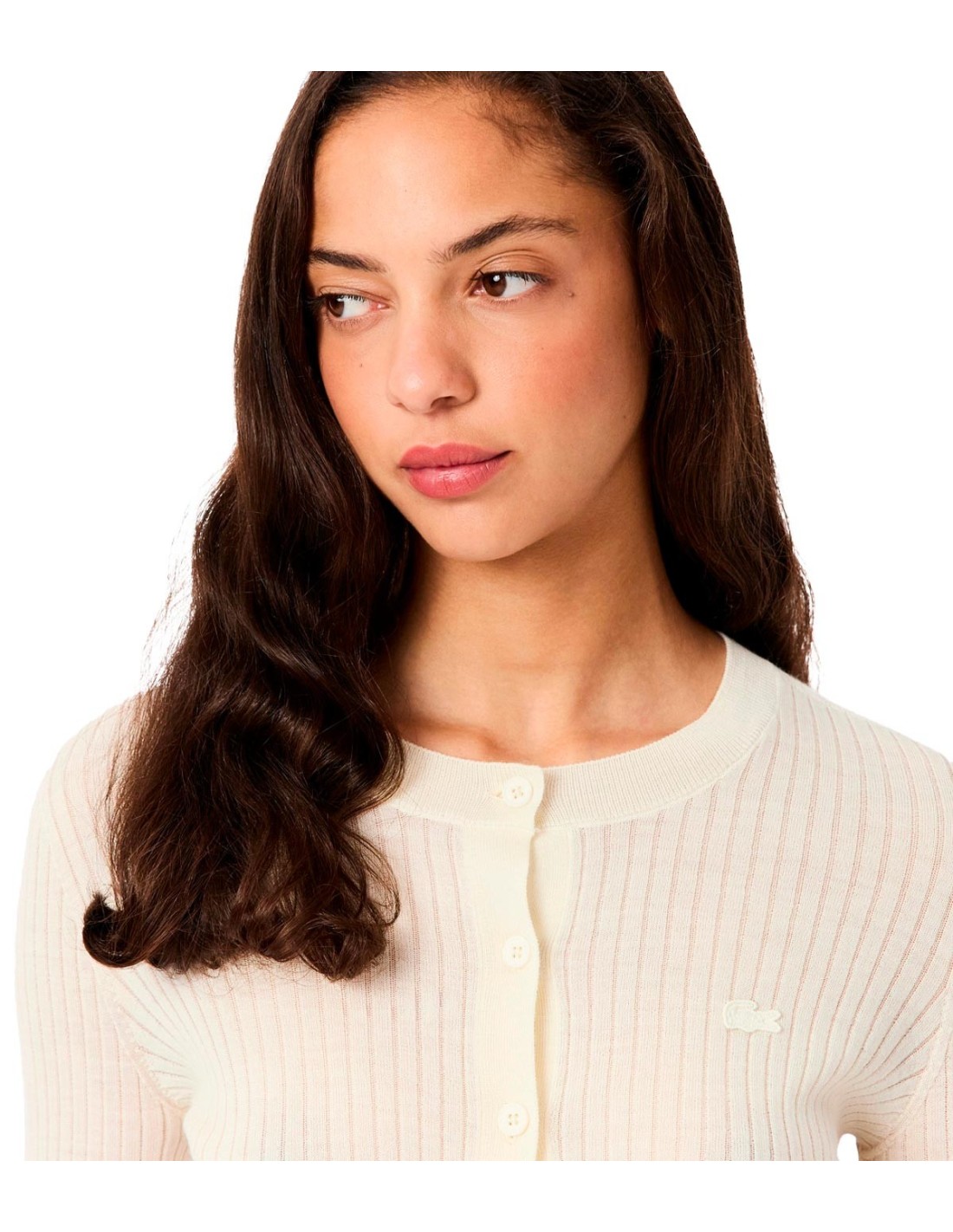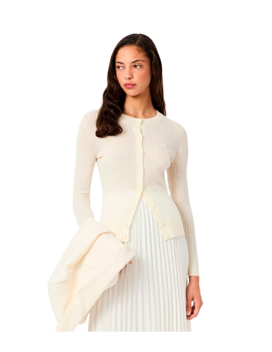 El Cárdigan Tricot de Lacoste en color beige está confeccionado en lana merino de punto acanalado, que ofrece suavidad y calidez. Presenta un cuello redondo clásico y mangas largas para un estilo atemporal. Los botones de goma tonales aportan un acabado elegante y discreto, mientras que el icónico cocodrilo bordado tonal en el busto añade un detalle distintivo. Perfecto para quienes buscan una prenda cómoda, versátil y sofisticada para cualquier ocasión.