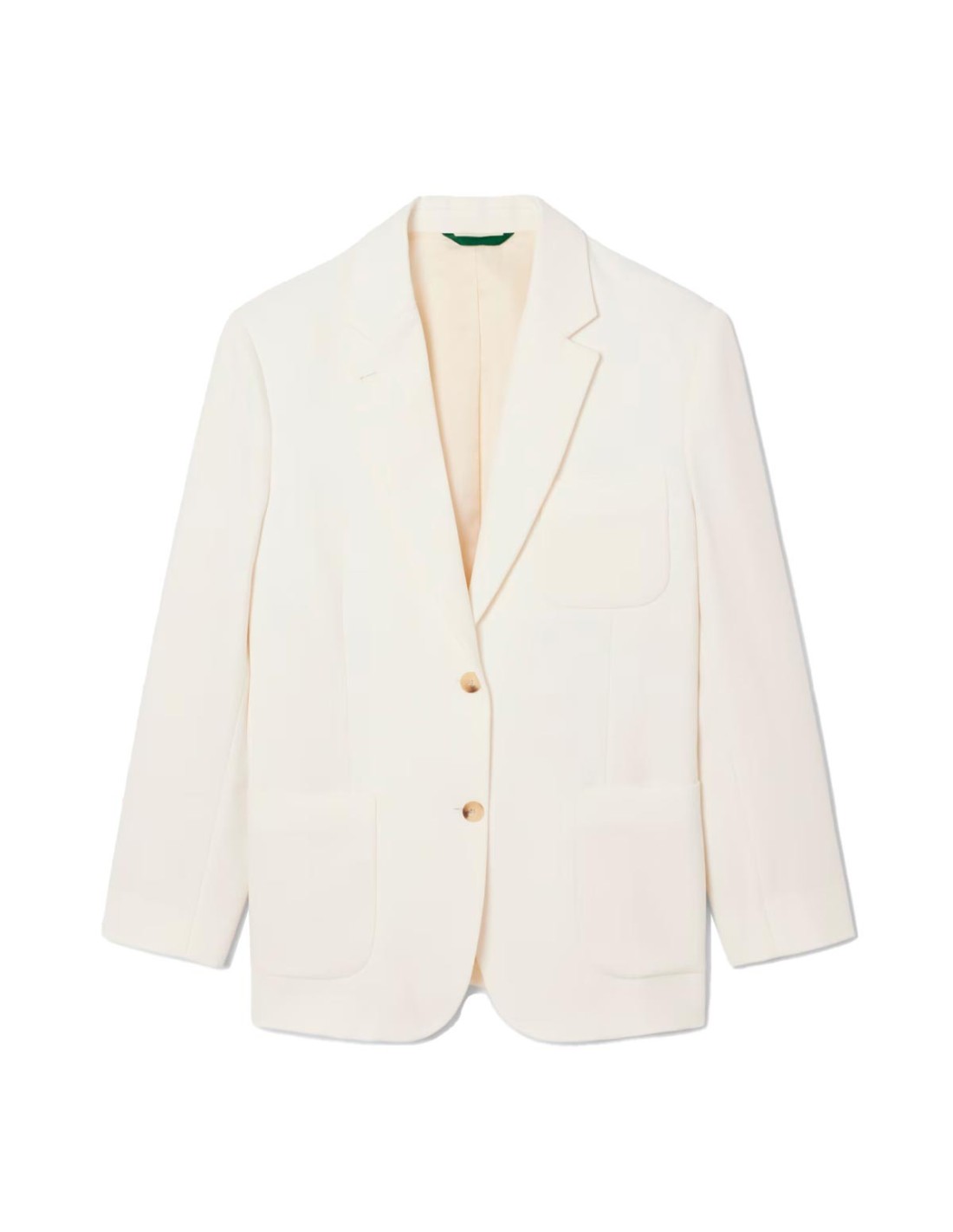 LacosteEsta blazer de sarga de lana blanca de Lacoste ofrece una silueta elegante y atemporal con un toque moderno. Confeccionada parcialmente en sarga de lana de alta calidad, garantiza estructura y comodidad en cada uso. Presenta un cierre de dos botones y aberturas en la espalda que facilitan el movimiento sin perder sofisticación. El icónico cocodrilo bordado añade un detalle distintivo y refinado. Ideal para elevar cualquier look con estilo y personalidad.