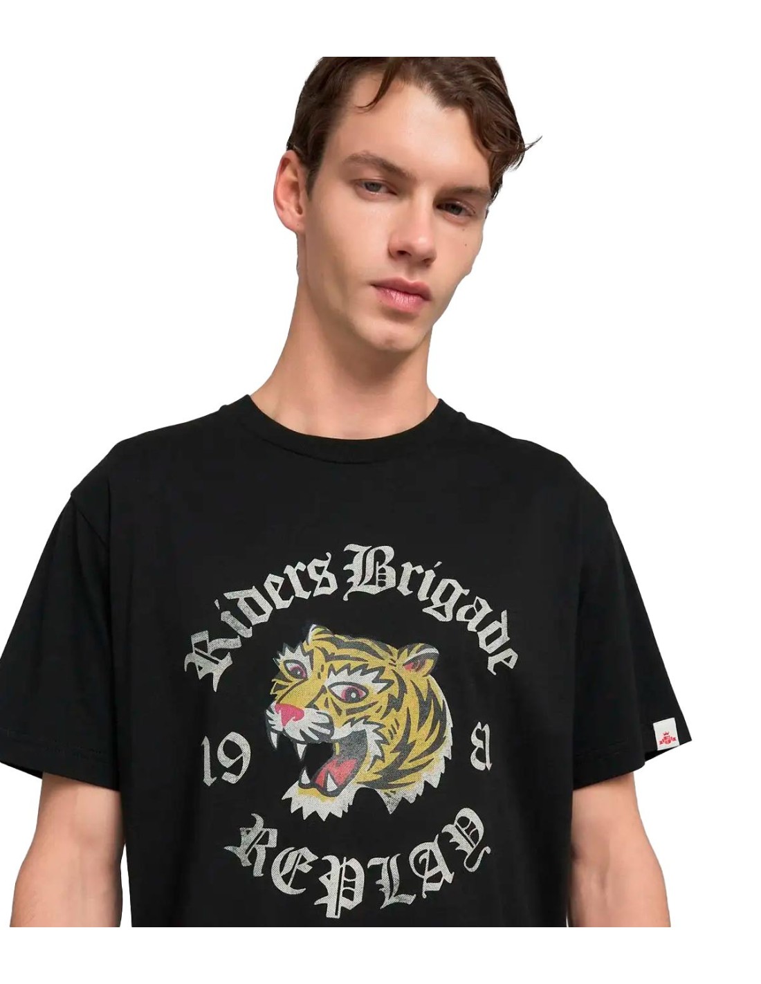 ReplayLa Camiseta con Estampado de Replay en color negro presenta un corte regular, cuello redondo y manga corta, ofreciendo comodidad y estilo en una prenda básica. Destaca por su inscripción personalizada con un diseño de tigre estampado en la parte delantera, que aporta un toque audaz y moderno. Fabricada en 100% algodón, garantiza suavidad y durabilidad. El diseño se completa con la icónica etiqueta con el logotipo de archivo en la manga, un detalle distintivo de la marca. Perfecta para un look casual con personalidad.