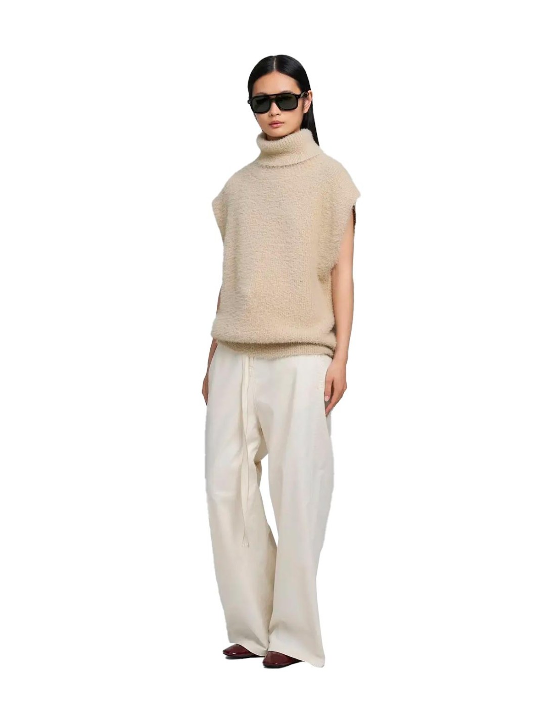 ReplayEl Jersey Sin Mangas Efecto Peludo de Replay en color beige está confeccionado en hilo técnico que aporta una textura suave y agradable al tacto. Su diseño de cuello alto y sisas muy amplias ofrece comodidad y libertad de movimiento. El bajo ahuecado con borde de canalé añade un detalle sutil y estilizado. Una prenda ligera y moderna perfecta para combinar en looks de temporada.