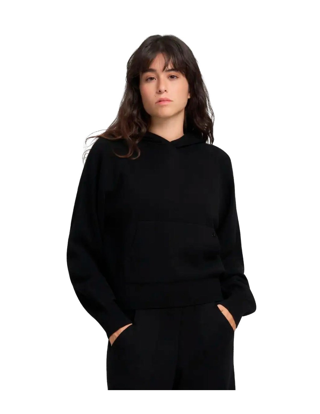 ReplayLa Sudadera de Punto con Capucha de Replay en color negro está confeccionada en una suave mezcla de viscosa que ofrece confort y suavidad. Presenta mangas largas raglán tipo globo y acabados de canalé en cuello, puños y bajo para mayor estructura. Cuenta con un práctico bolsillo frontal tipo canguro, decorado con el icónico bordado R. Una prenda versátil y cómoda para el día a día.