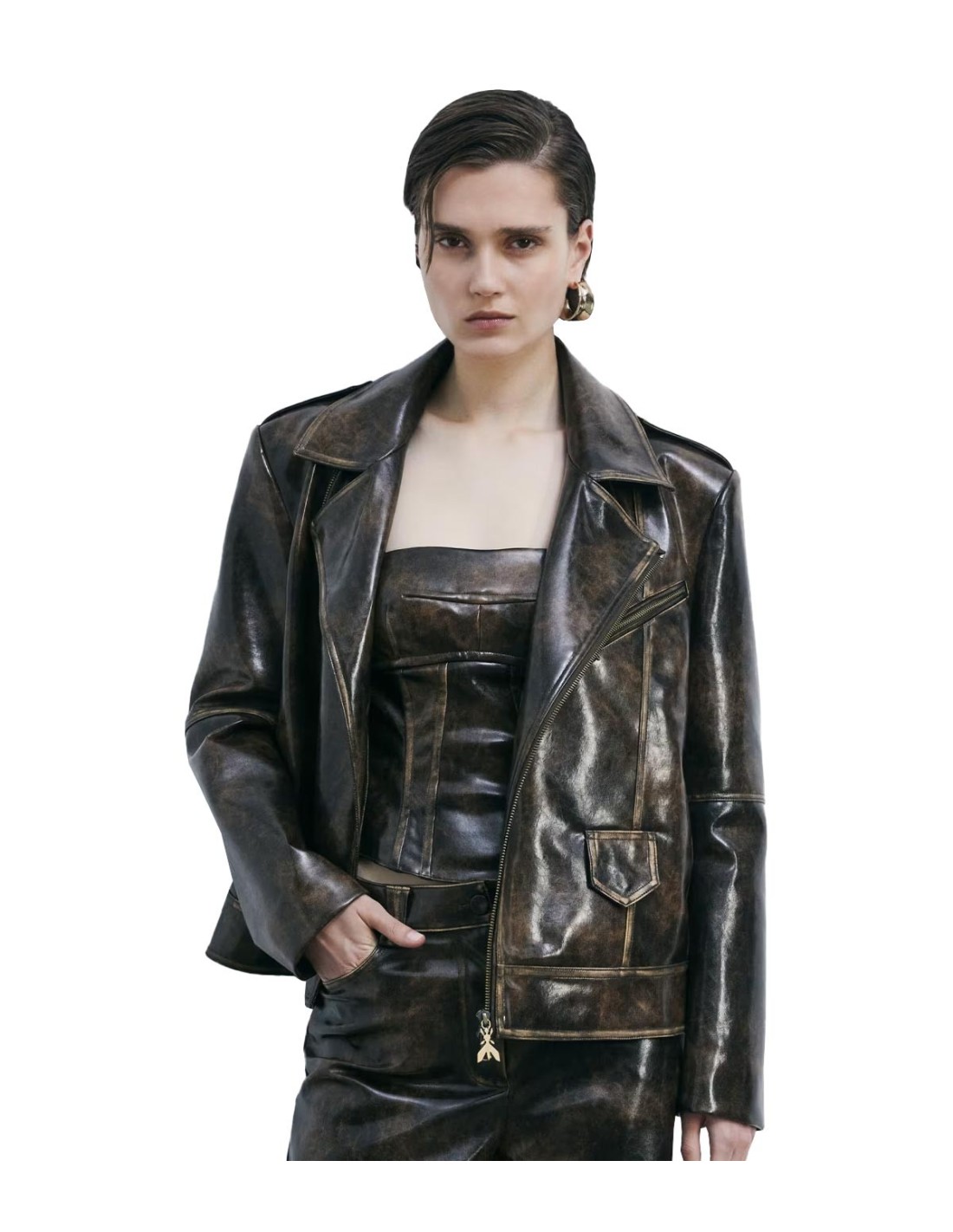 Patrizia PepeDescubre la Cazadora Oversize de Tejido Revestido de Patrizia Pepe, una prenda única en color marrón con acabado cepillado que aporta suavidad al tacto y gran resistencia. Su corte oversize brinda un estilo relajado y moderno, perfecto para looks urbanos con carácter. El tejido presenta un efecto “usado” que añade autenticidad, junto a matices cálidos y envolventes que realzan su atractivo. Incorpora escote con solapas y manga larga, fusionando elegancia casual con una estética contemporánea. Ideal para destacar con actitud y confort en cualquier temporada.