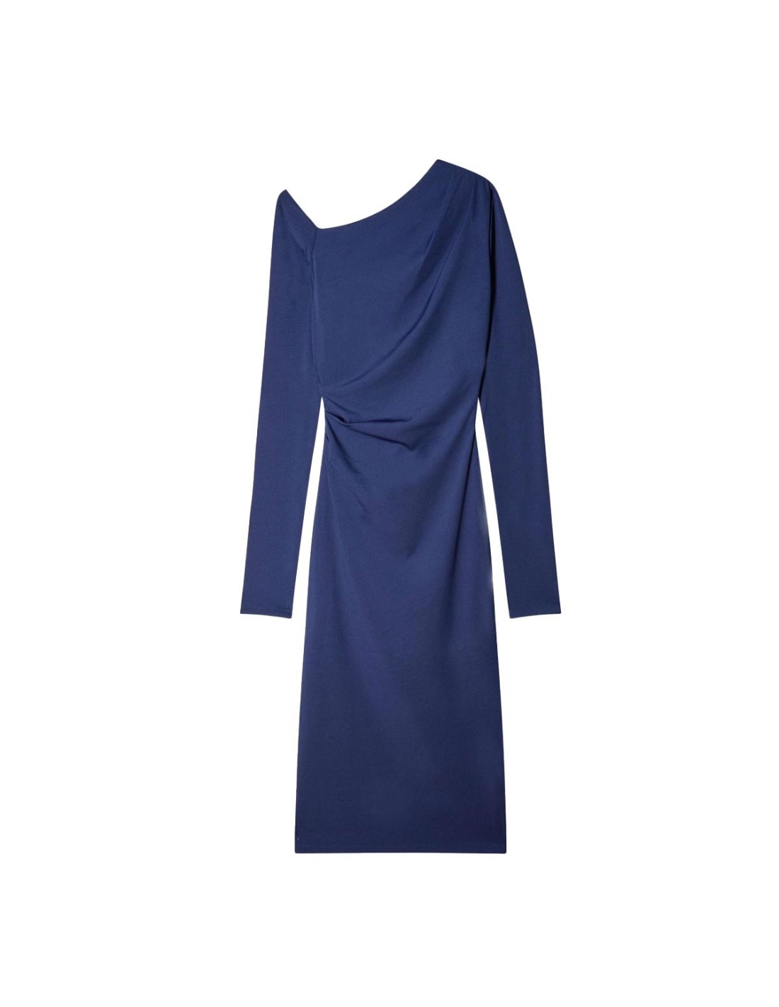 Patrizia PepeEl Vestido Tubo Midi Elástico de Patrizia Pepe es una prenda sofisticada y moderna en un profundo tono azul. Su diseño de escote asimétrico y manga extralarga aporta un toque audaz y elegante, ideal para destacar en cualquier ocasión. Confeccionado en Italia, su tejido elástico se adapta perfectamente al cuerpo, realzando la silueta con un corte ajustado. El largo midi equilibra sensualidad y refinamiento, creando una estética estilizada y contemporánea. Una opción impecable para un look de impacto con sello italiano.