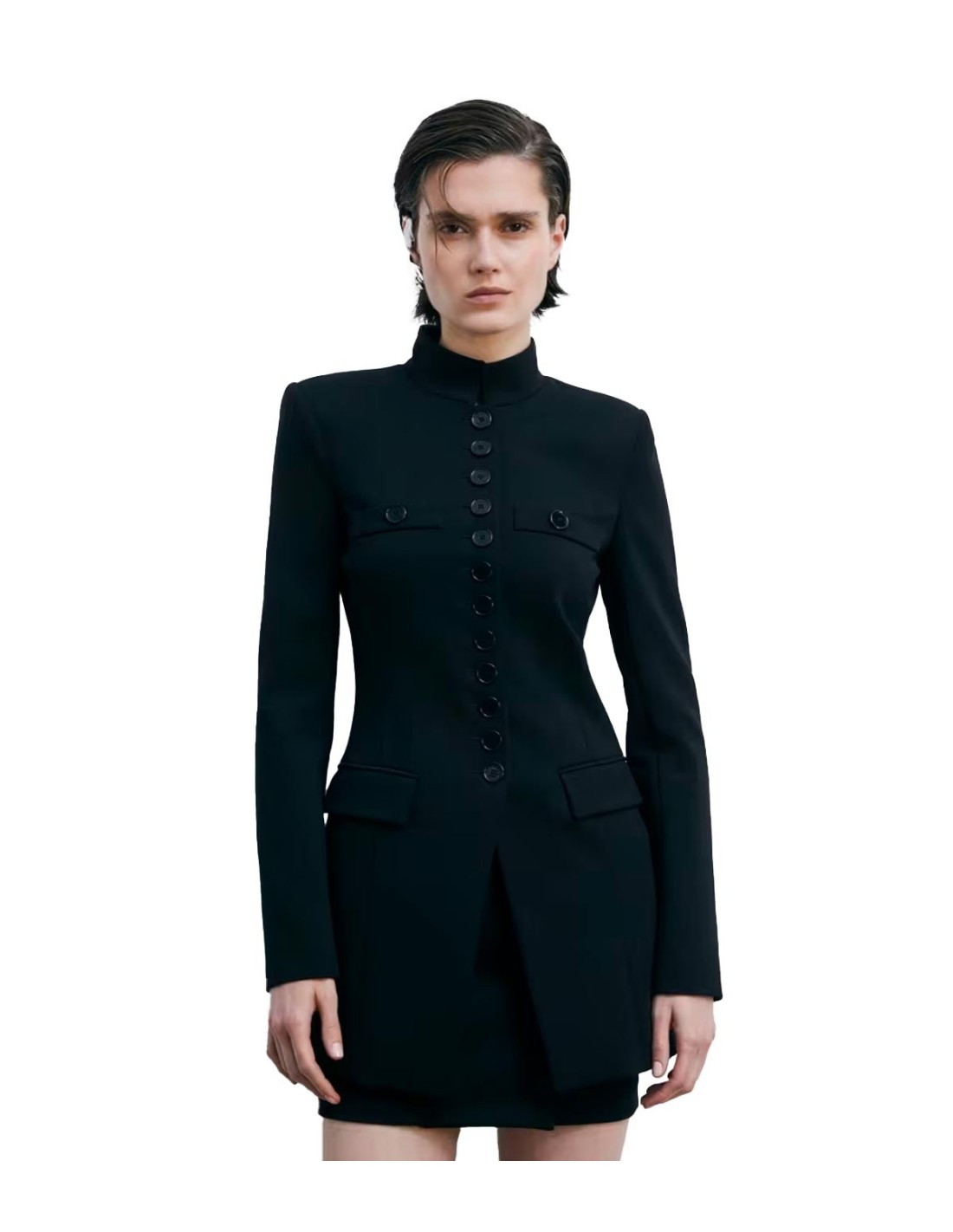La Chaqueta Radical Rose de Patrizia Pepe en color negro combina elegancia y fuerza en un diseño contemporáneo, Made in Italy. Confeccionada en tejido stretch (65% viscosa, 30% poliamídica, 5% elastano), presenta un corte ajustado con cuello mao que realza la silueta con carácter. Su diseño estructurado y escultórico aporta volumen y determinación, reinterpretando el espíritu “officier” de la marca. Versátil y sofisticada, es perfecta para looks que exigen estilo y presencia. Una pieza distintiva que fusiona modernidad, comodidad y elegancia en cada detalle.