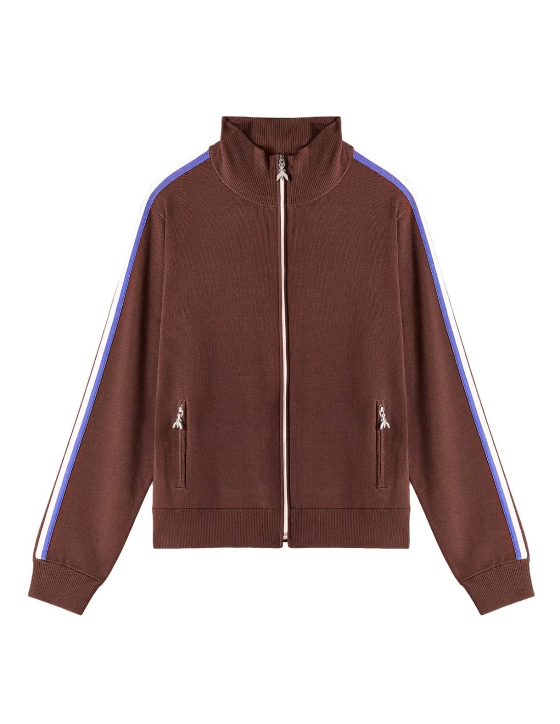 Patrizia PepeLa Chaqueta con Logo de Patrizia Pepe en color marrón combina el confort del punto ligero con un diseño versátil y moderno pensado para la mujer activa. Su cuello alto con cremallera y corte normal aportan un ajuste práctico y favorecedor para el día a día. El logo bordado junto a las rayas en contraste en las mangas evocan el estilo deportivo de los años 90, renovado con un aire contemporáneo. Confeccionada en una mezcla de viscosa y nylon de punto ultra fino, garantiza ligereza y confort térmico. Una prenda icónica del sportswear que no puede faltar en tu armario.