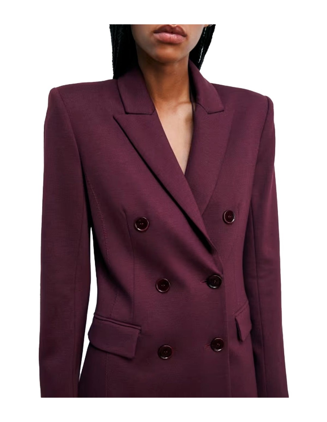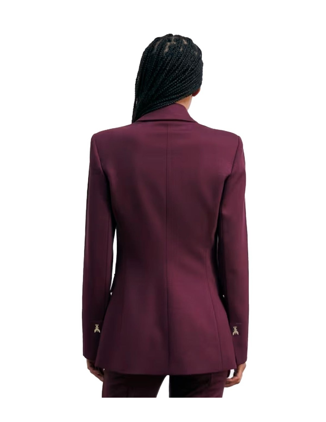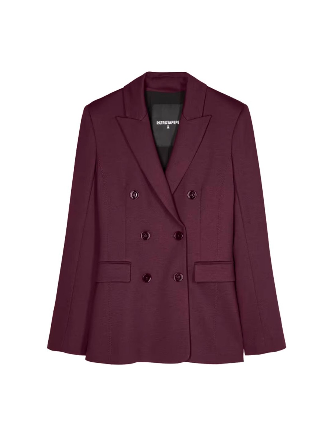 Patrizia PepeLa Chaqueta Cruzada con Remaches Fly de Patrizia Pepe en color burdeos es una prenda sofisticada y versátil para el armario femenino. Confeccionada en un tejido elástico y resistente, presenta solapas en pico y un corte relajado que resalta los hombros marcados. Sus remaches metálicos con logo Fly en las mangas y las costuras delanteras aportan un detalle distintivo y moderno. Su diseño equilibra elegancia y comodidad, adaptándose al ritmo de la mujer actual. Perfecta para lucir impecable desde la oficina hasta el afterwork.