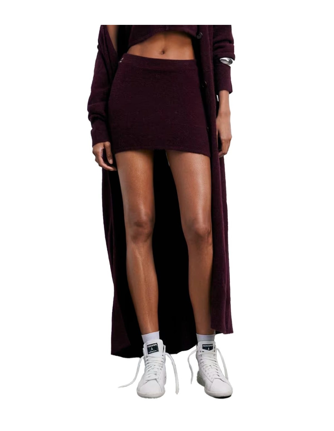 Patrizia PepeLa Minifalda de Punto Suave de Patrizia Pepe combina comodidad y estilo en un diseño esencial de aire urban glam. Confeccionada en hilo de fibra mixta de tacto suave, ofrece una sensación envolvente y agradable al contacto con la piel. Su corte ajustado, talle normal y largo mini realzan la silueta, mientras que el logotipo Fly en la cinturilla delantera aporta un detalle distintivo. Ideal para combinar con el cárdigan largo y el top sin mangas del mismo set, permite un look atrevido acompañado de zapatillas y joyas llamativas.