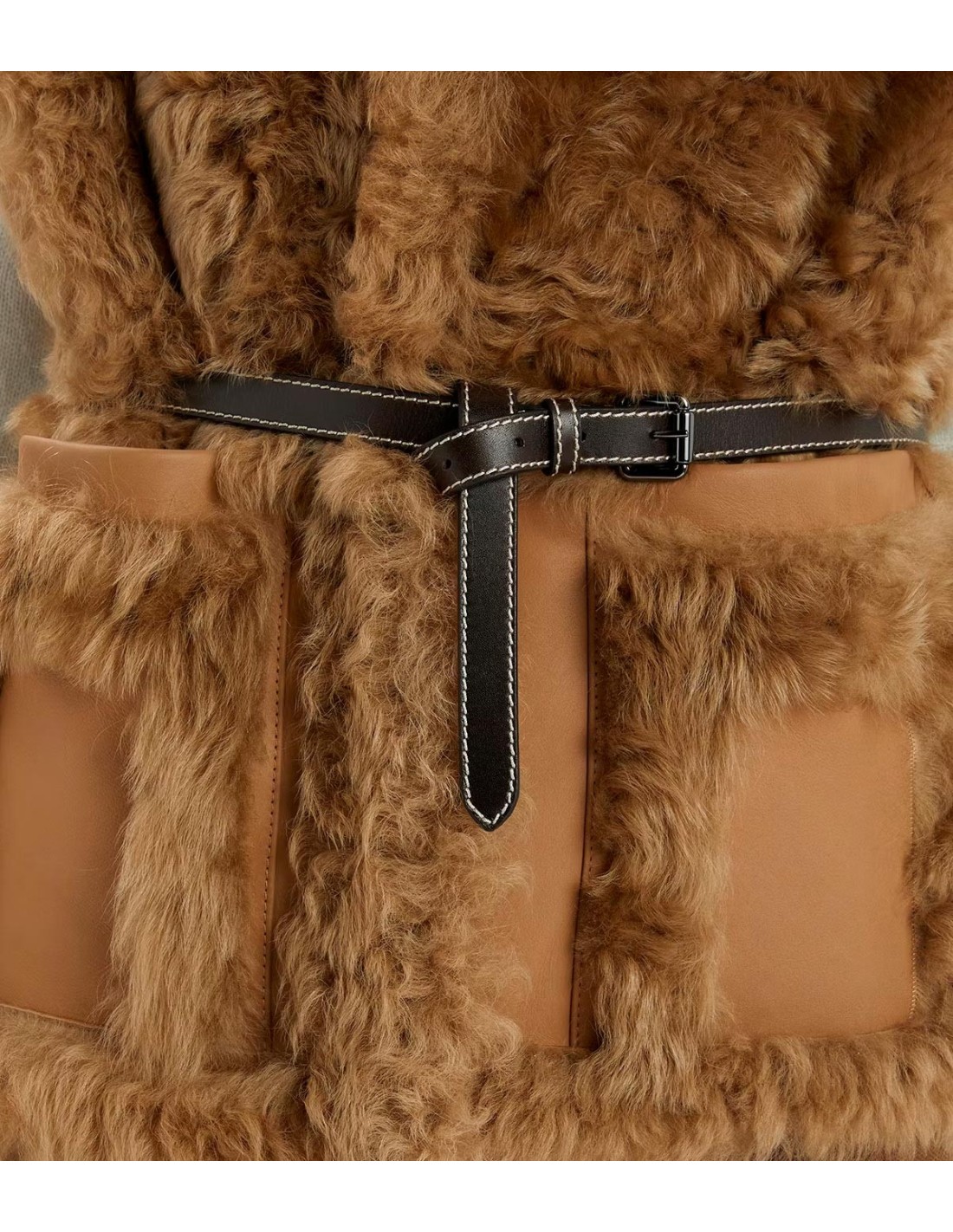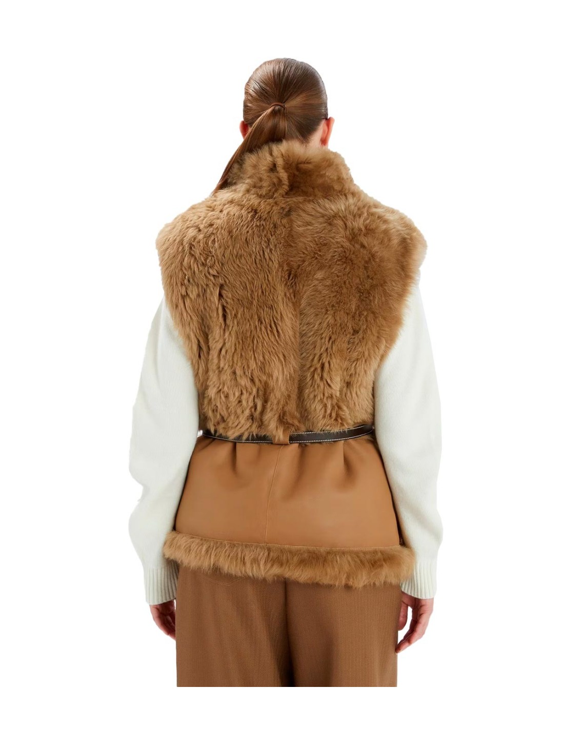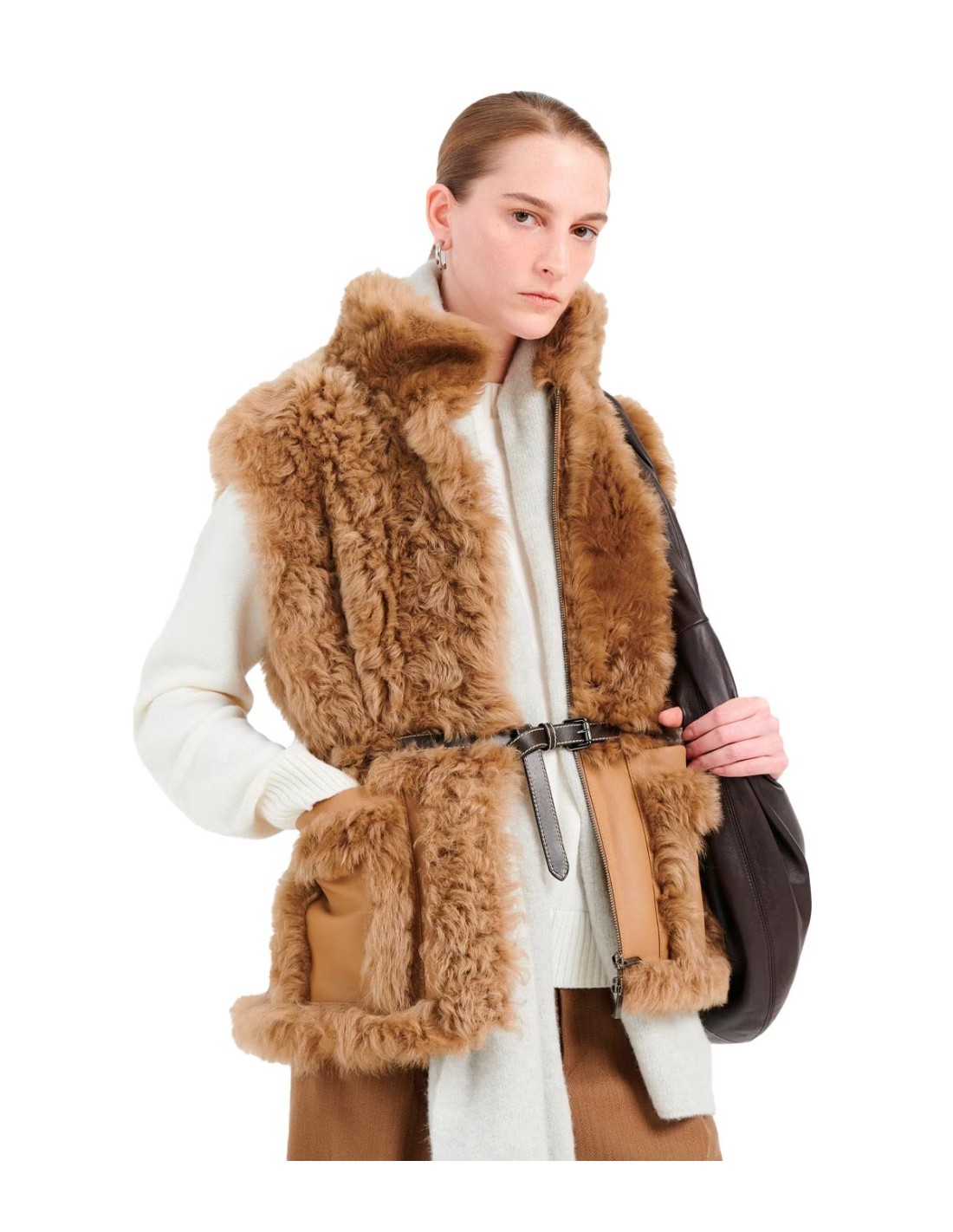 HighEl Chaleco de Piel Contest de High en color marrón combina lujo y estilo con un diseño que alterna suave piel de oveja y detalles de piel lisa, tanto por dentro como por fuera, creando un contraste sofisticado. Presenta cuello alto y cierre de cremallera oculta para mayor protección y elegancia. Incluye cinturón ajustable y dos bolsillos de ribete que aportan funcionalidad sin sacrificar el estilo. Con largo hasta la cadera, ofrece un ajuste cómodo y moderno. Una prenda versátil que eleva cualquier look con un toque de distinción.
