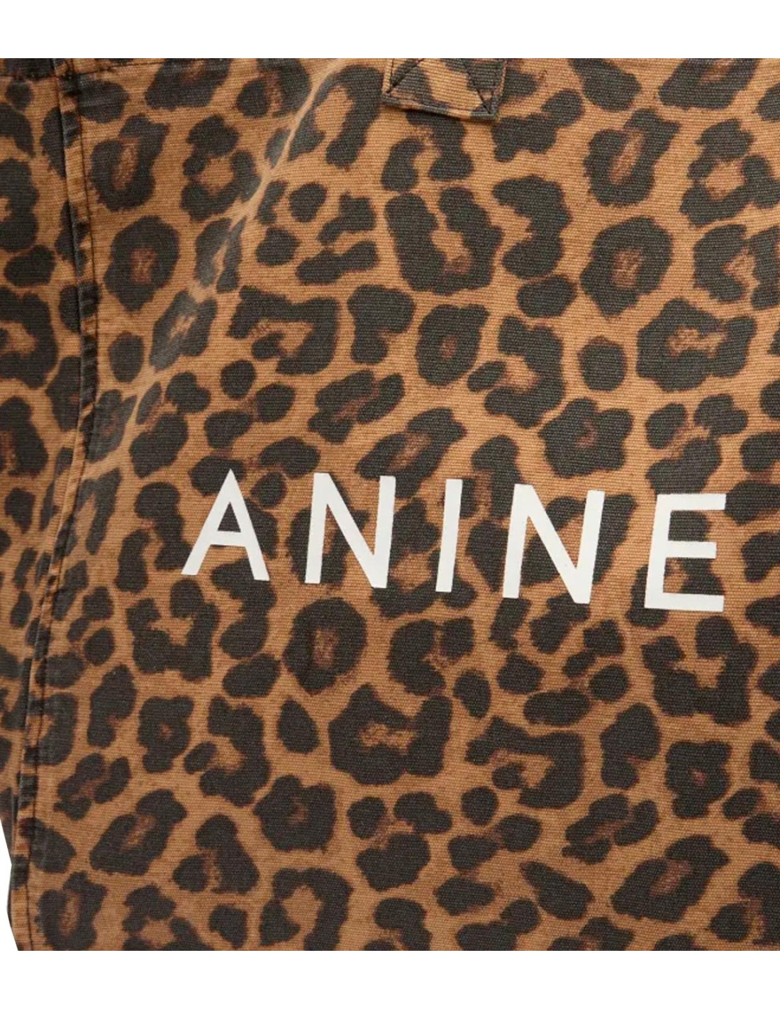 Anine BingEl Bolso Tote Leo Canvas de Anine Bing destaca por su diseño audaz con estampado de leopardo en tonos negro y marrón. Confeccionado en lona 100% algodón, combina resistencia y estilo para el día a día. Presenta un formato sin forro, lo que le otorga ligereza y practicidad. La marca ANINE BING aparece serigrafiada en blanco en contraste, aportando un toque icónico. Un accesorio funcional y moderno, perfecto para llevar con cualquier look casual.