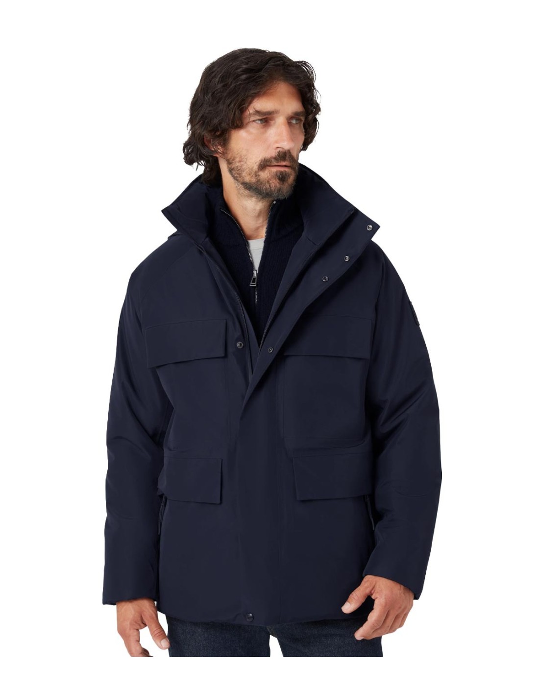 BelstaffLa chaqueta Force Technical Poly de Belstaff combina diseño técnico y estilo contemporáneo. Disponible en azul, incluye una capucha plegable que se guarda en el cuello, un cuello alzado protector y cordón de ajuste en la capucha y el bajo para mayor funcionalidad. Su diseño incorpora cuatro bolsillos con solapa, además de bolsillos en la cadera con broches ocultos y dos bolsillos impermeables de entrada lateral con cremallera. El look se completa con parche de silicona al tono y un cierre central de cremallera con cruce de broche, aportando comodidad y un acabado sofisticado.