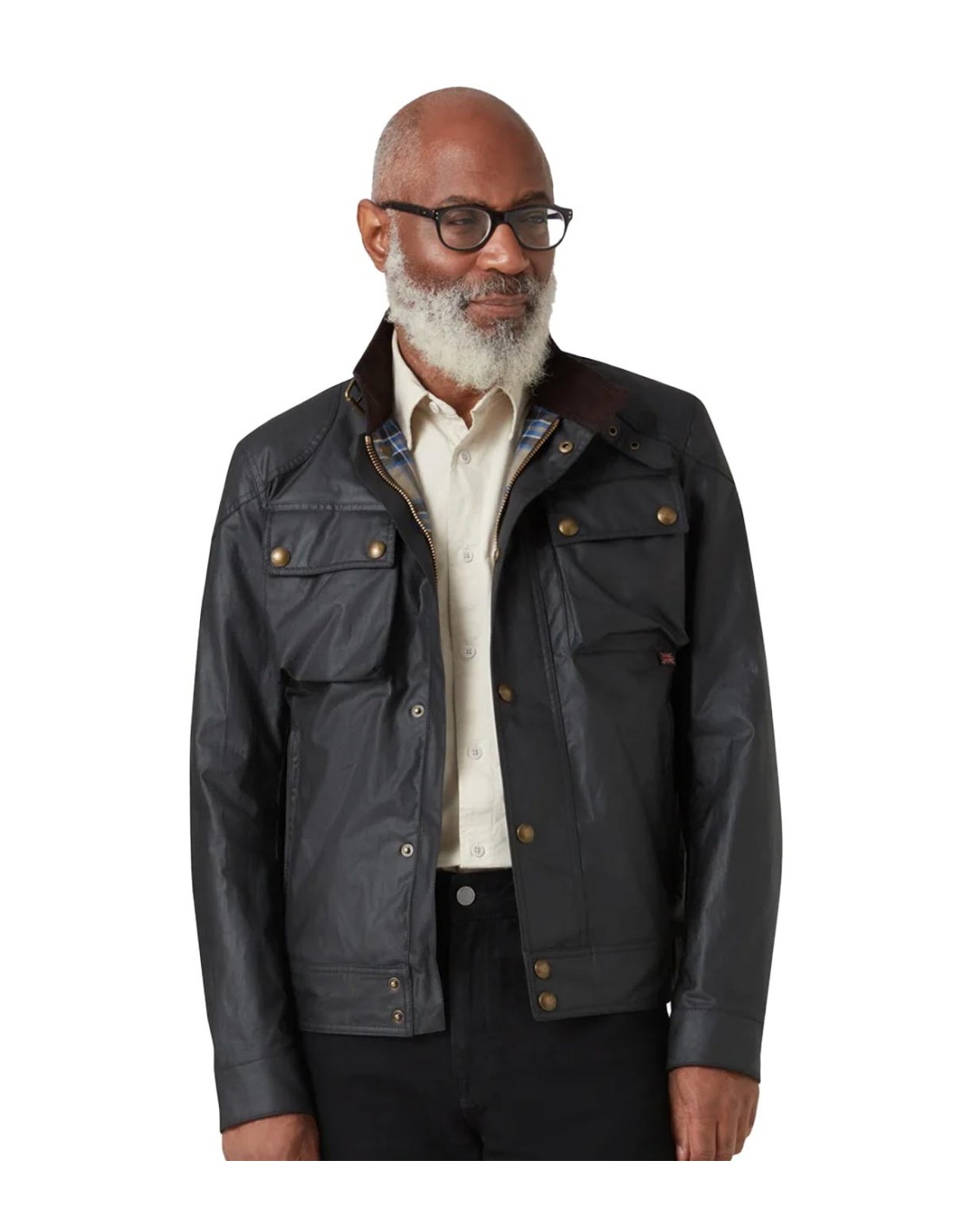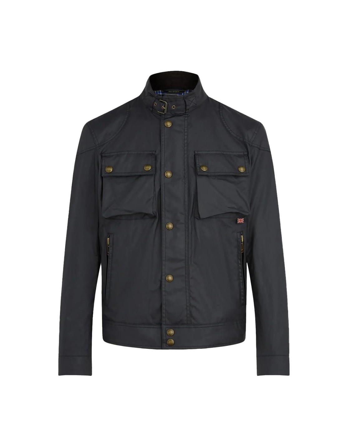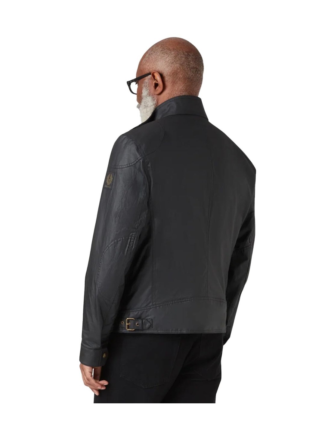 BelstaffLa chaqueta encerada Racemaster de Belstaff es un icono de estilo funcional y atemporal. En color negro, se presenta como una chaqueta de campo con cuatro bolsillos externos, parches de refuerzo y detalles de pana que realzan su carácter clásico. Su tejido es repelente al agua y al viento, mientras que los herrajes metálicos de latón antiguo llevan grabado “Belstaff England”. Completa su diseño el cierre central con cremallera y tapeta a presión, el parche del fénix en la manga izquierda y el cuello ajustado con hebilla, aportando un toque distintivo y auténtico.