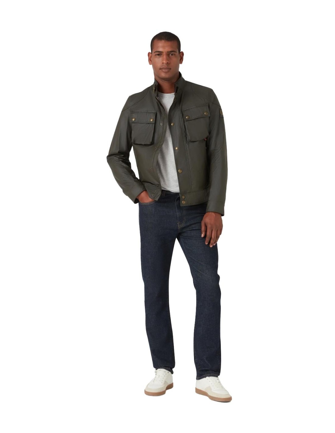 BelstaffLa Chaqueta Encerada Racemaster de Belstaff en verde combina un estilo militar clásico con funcionalidad moderna. Presenta cuatro bolsillos exteriores, parches de refuerzo y detalles de pana que aportan carácter y durabilidad. El cuello ajustable con hebilla y los dos bolsillos con solapa y broches de presión, junto con dos bolsillos inferiores con cremallera, ofrecen practicidad y estilo. Los detalles metálicos de latón antiguo realzan su carácter emblemático. Confeccionada en algodón encerado de 170 g, es resistente y perfecta para un look urbano y sofisticado.