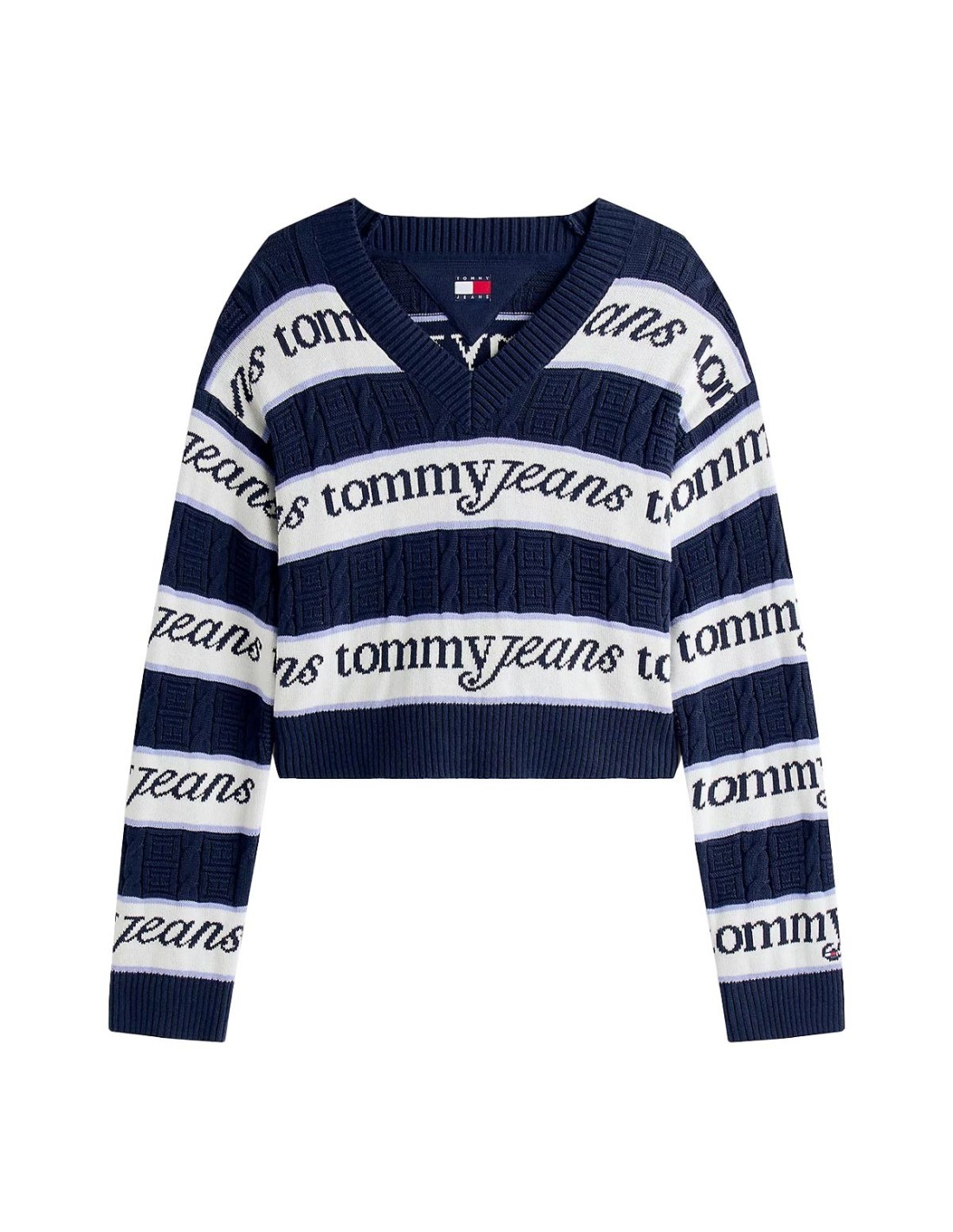 Tommy JeansEl Jersey Amplio con Logo de Tommy Jeans combina comodidad y estilo gracias a su diseño integral de rayas decorado con el logo en Serif Script que aporta un aire distintivo. Confeccionado en 100 % algodón, ofrece suavidad y transpirabilidad, ideal para el día a día. Presenta un cuello de pico y acabados de punto elástico en cuello, puños y bajo que realzan su ajuste. Su corte amplio con hombros ligeramente caídos garantiza un estilo desenfadado y moderno. Una prenda versátil y atemporal con los detalles característicos de Tommy Jeans.
