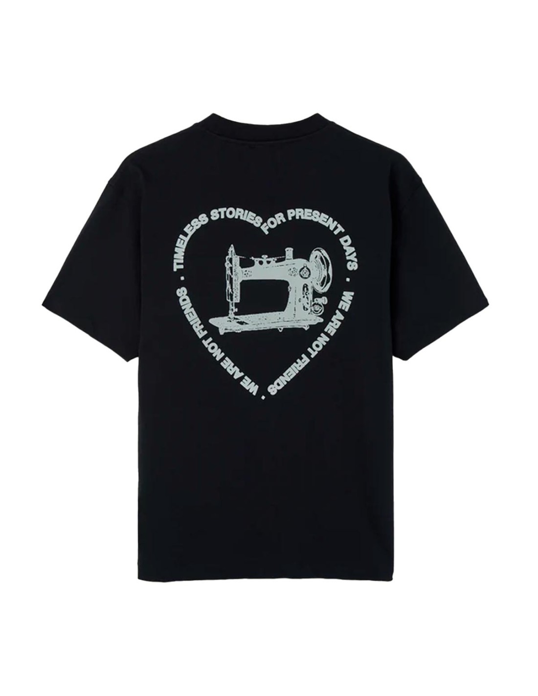 La camiseta Sewing de We Are Not Friends combina estilo urbano con un toque vintage y creativo. En color negro, presenta cuello redondo, manga corta y un llamativo estampado en la espalda que muestra una máquina de coser vintage enmarcada en un corazón, evocando la tradición artesanal y la atención al detalle. Confeccionada en 100% algodón y hecha en Portugal, ofrece suavidad, comodidad y un diseño distintivo que resalta en cualquier look casual o streetwear.